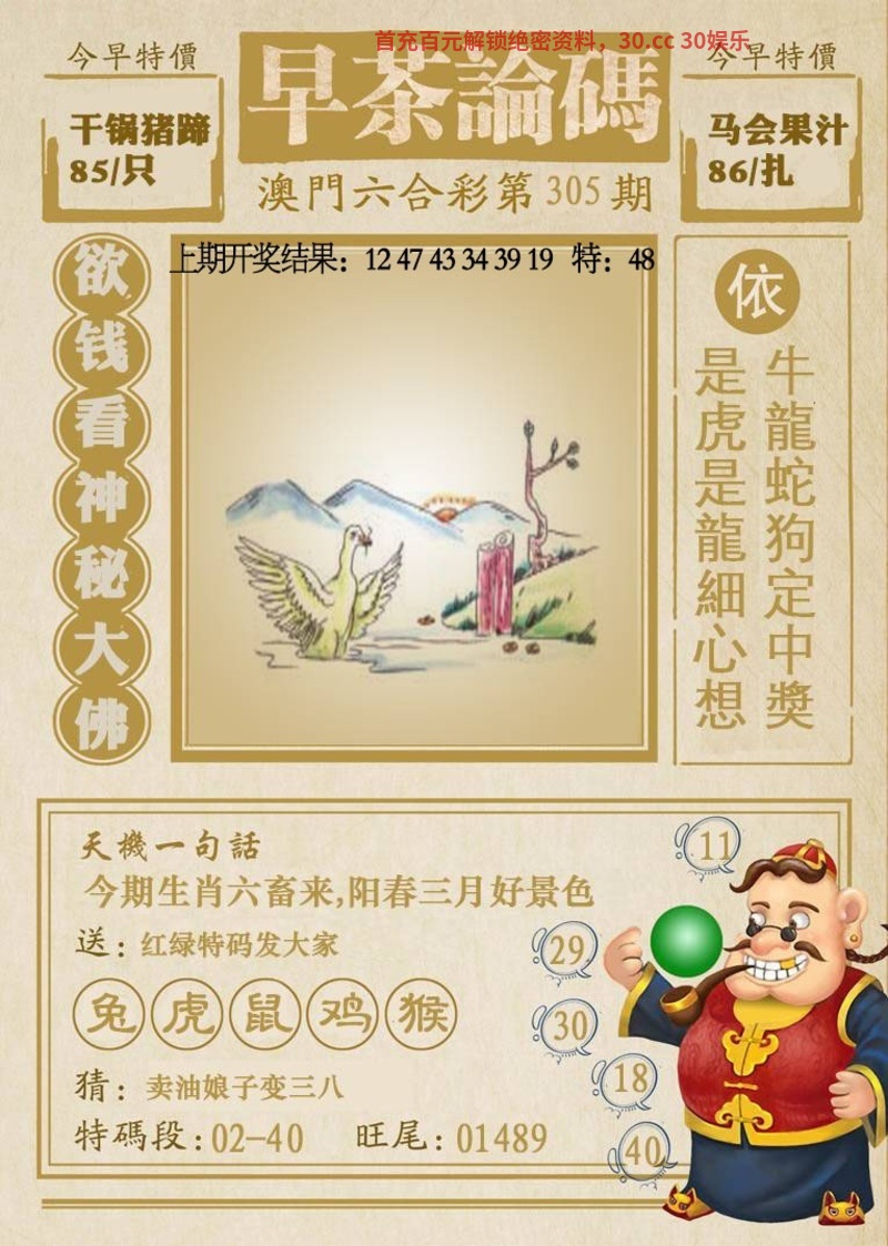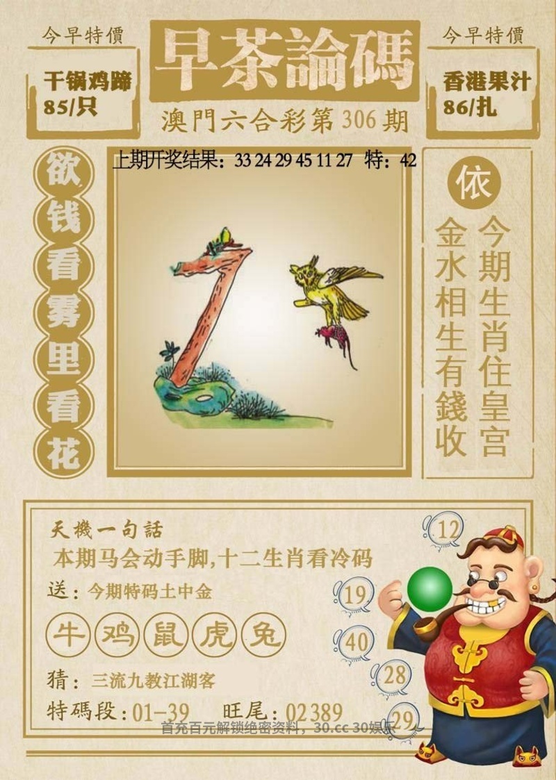 | 306期 | 猪 | 2头双 | 红双 | 牛17准 |